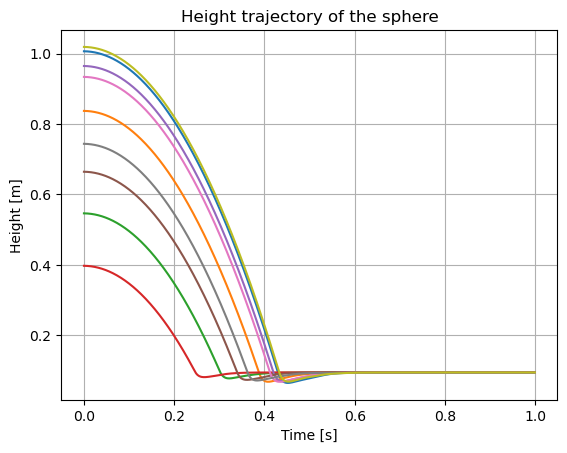 plt.title("Height trajectory of the sphere")
